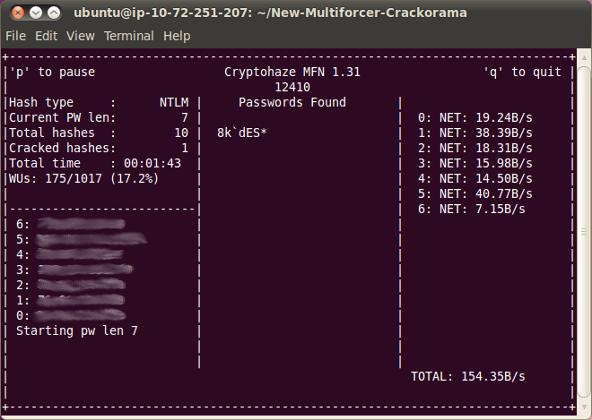 Let's say we're interested in a few NTLM length 8 passwords. Fairly standard for a corporate audit.