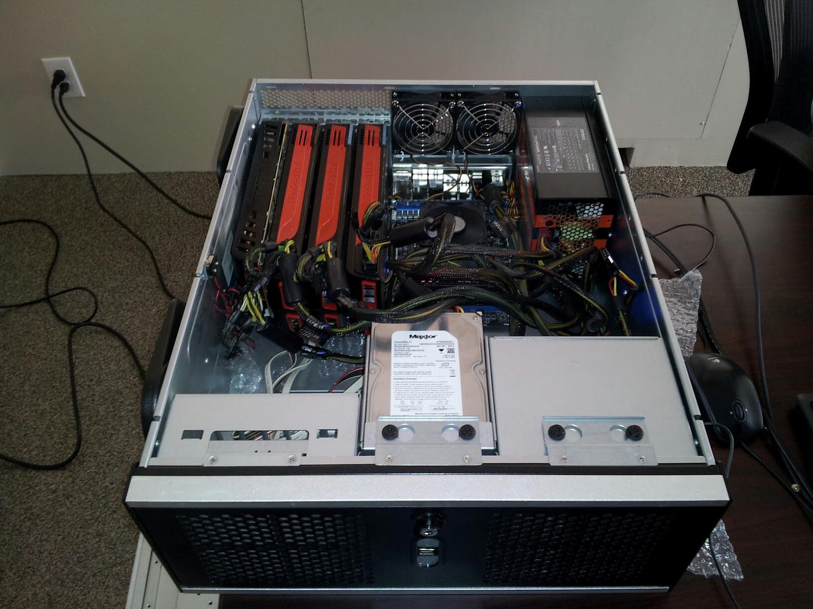Nice! Thanks for the pictures. I'm always interested in password cracking hardware platforms, and this gives me a few ideas.