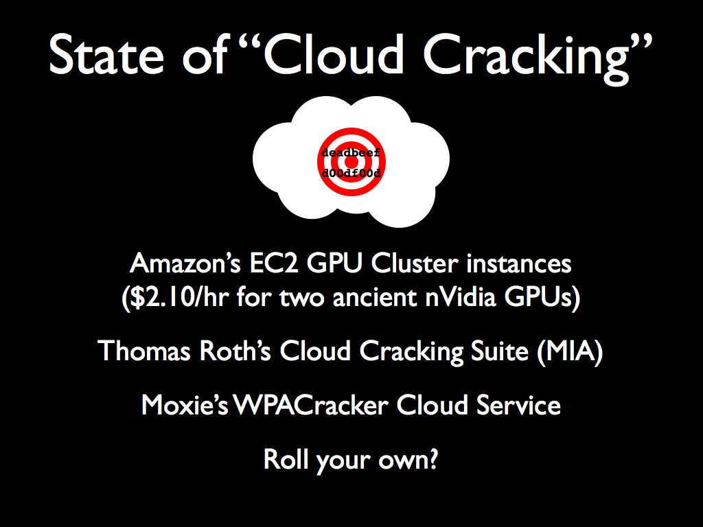 Now, I’d like to discuss the state of “cloud password cracking.” We keep hearing about it, but what is it?