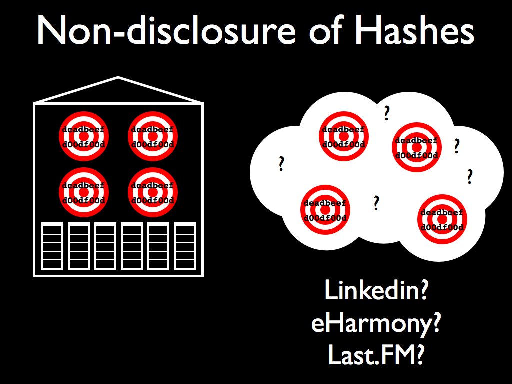 The same is true of eHarmony, Last.FM, and plenty of others. Hash disclosure means the world knows what you’ve just dumped hashes from.