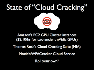 The next “big thing” from 2011 was Thomas Roth’s “Cloud Cracking Suite.” This, unfortunately, has been talked about at several conferences and is badly missing in action with no news for the past 6 months or so.