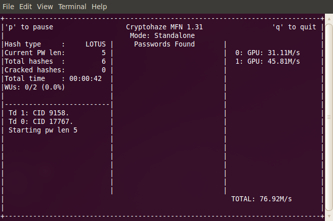 And, for the nVidia side of the house, a comparison between a stock clocked 7970 (46M/s) and a stock GTX470 (31M/s):