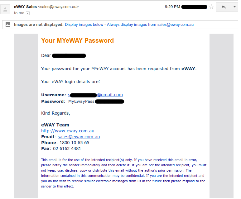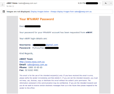The CEO of eWAY has contacted me (under 12h after this post went live - very impressive response time), and assured me that they are rapidly addressing the issues addressed. I've updated this post with a few more details, but from the conversation we had, they take security very seriously, and are resolving the identified problems as quickly as they can. They were already addressing certain issues (the IP logging), are working to get people off of the old 8 digit ID system, and are actively resolving other issues (the plaintext password email). I'm quite satisfied with their responsiveness to this (especially compared to other companies in similar situations recently who denied it for ages), and am convinced that they do take security seriously. Please feel free to use them. I'm leaving the content of the post for historical purposes, and will also update it with their response when they provide one.Have you heard of eWAY? If you don't live in one of three countries, probably not. You have now!